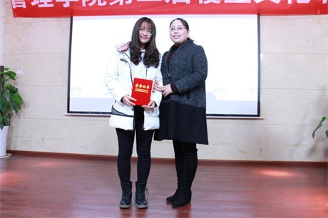 2016128日晚上七点,管理学院第二届寝室文化节于管院三楼报告厅隆重举行。管理学院学生科科长芮丽华、团委负责人陈芊羽老师、学生科老师向珂莹出席了本次寝室文化节,并和团委学生会主席团成员们一起担任了本次文化节的评委。本次寝室文化节以“寝室无边界,聚力管苑园”为口号,体现了“创新、活力、绿色、温馨”的寝室文化内涵,目的是为了评选我院优秀寝室,并为广大同学打造寝室文化提供模范和蓝本。