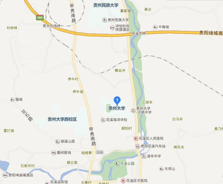 一、导航搜索“贵州大学北校区”或“贵州大学花溪北校区”均能定位到本次峰会的举办校区。示意定位如下: