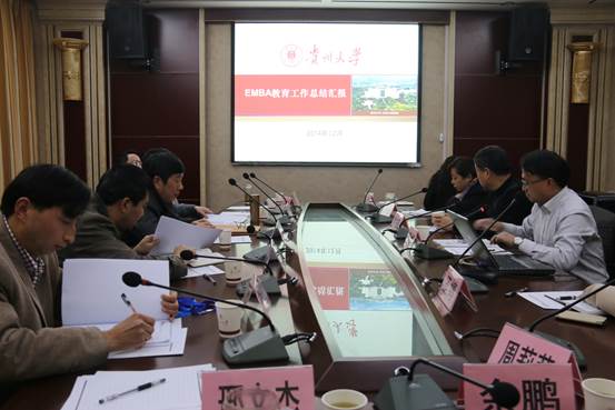 为进一步促进EMBA迎评工作,12月23日下午3:00我院特邀请了研究生院副院长杨瑞东教授、校评估中心主任李明教授、副主任安世遨教授、经济学院江东坡博士(学校评估中心聘任专家)4位专家对我院EMBA项目进行模拟检查评估。