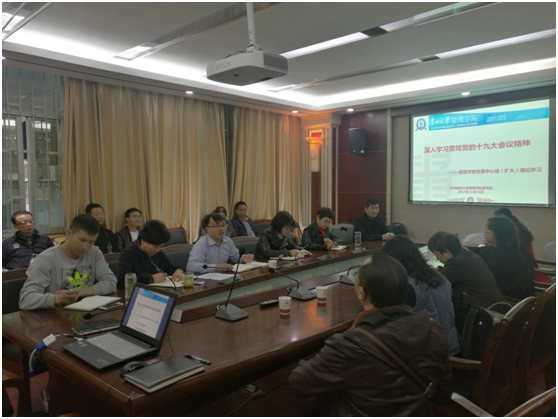 最后,李烨院长总结到:十九大之后,作为教师要高质量的教书育人。十九大是具有时代意义的一次盛会,对中国、对世界将产生重大影响。学院师生要高度重视十九大报告、习近平总书记在贵州代表团的重要指示,要开展形式多样的学习宣讲活动。教师要传播正能量,将十九大精神传播到各处,通过教书育人,感化学生,正面引导学生,在课堂上体现十九大精神,让学生健康成长。李烨院长表示十九大报告最后一段专门讲青年。青年人的成长要靠教育、靠学校、靠老师,对老师提出了新的要求。教师培养未来接班人,要培养有理想、有担当、务实的青年。学院将筹备成立教师宣讲团,围绕乡村振兴战略、企业家精神、创新驱动主题等向管院学生、乃至全校学生进行宣讲。