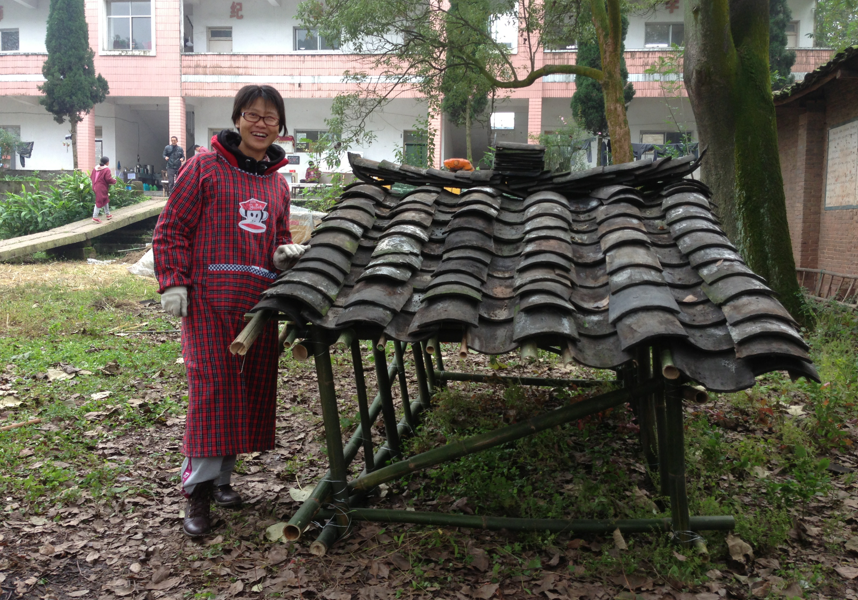 给新型农民培训时讨论乡村建筑中的传统瓦房建筑,与贫困农户共同探讨贫困社区乡村振兴中的传统建筑。
