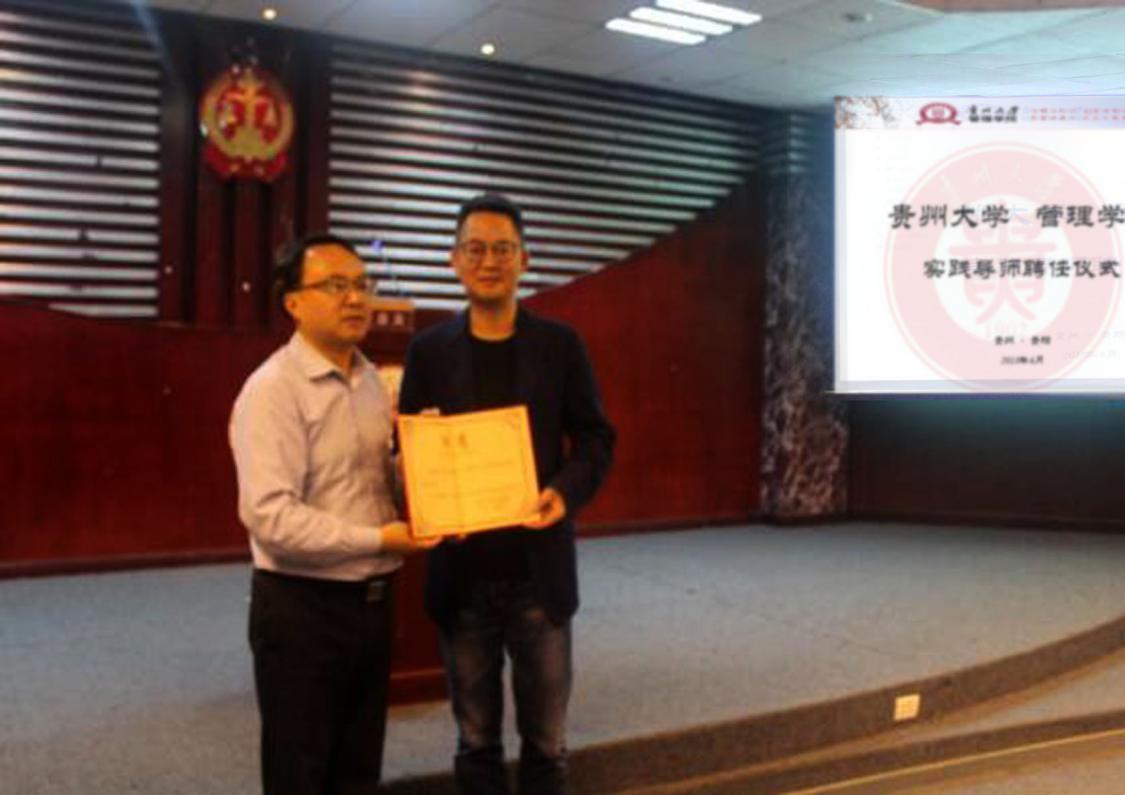 2018年6月2日 上午9:00,贵阳万科董事长受聘管理学院实践导师聘任仪式在贵州大学模拟法庭隆重举行。经乐动官方网站研究决定聘任贵阳万科董事长兼总经理吴忠友先生为我院实践导师。管理学院院长李烨教授为吴忠友先生颁发了聘书。管理学院MBA教育中心主任刘宁副教授主持了此次聘任仪式,管理学院硕士生导师邢文杰博士等出席了此次聘任仪式。