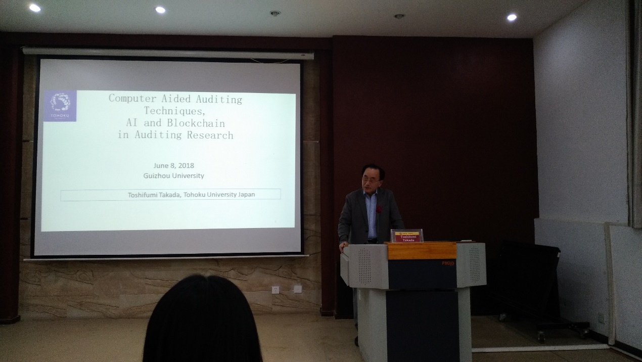应管理学院邀请,2018年6月8日15:00,日本东北大学国际会计政策研究生院院长高田敏文教授在管理学院一楼102室,为管理学院广大师生献上了一场题为“计算机辅助审计技术,AI与区块链技术在审计研究中的应用”的精彩讲座。该讲座由梁亮副教授主持,参加人员包括教师代表、研究生代表和本科生代表。