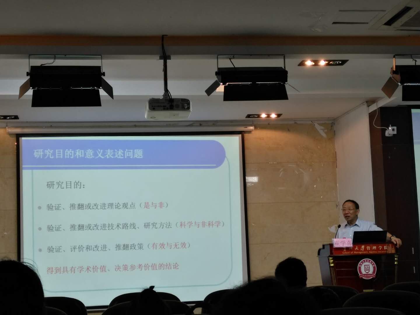 霍学喜教授从项目选题、研究目的和意义表述、文献综述与评价、研究思路与方法、规范分析与实证分析关系、结论与讨论等问题进行详细介绍。霍教授认为,选题的学术价值标准是前瞻性和创新性,突出问题导向,凝练科学问题;文献综述重点是对已有研究成果的总结、概括,特别是学术批判意义的评价,而非简单的、介绍性的学术描述,要有针对性、系统性、前沿性和逻辑性,决定项目创新性的关键是研究方法,要围绕关键环节,科学设计研究方案,从研究的起点至终点要关注形式、逻辑、内容的一致性问题。霍教授还以自己的科研成果和英文论文分析了规范分析与实证分析关系,鼓励大家多发表英文论文。霍学喜教授讲座内容生动、语言朴实,受到参会教师的好评。