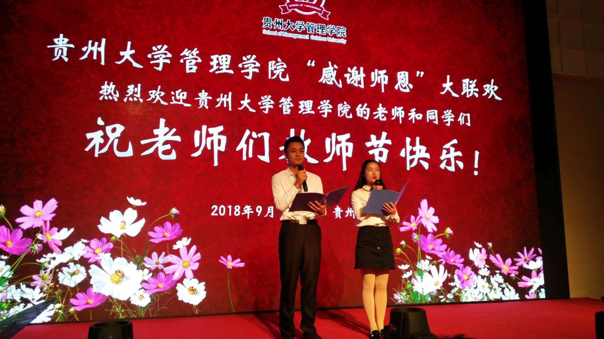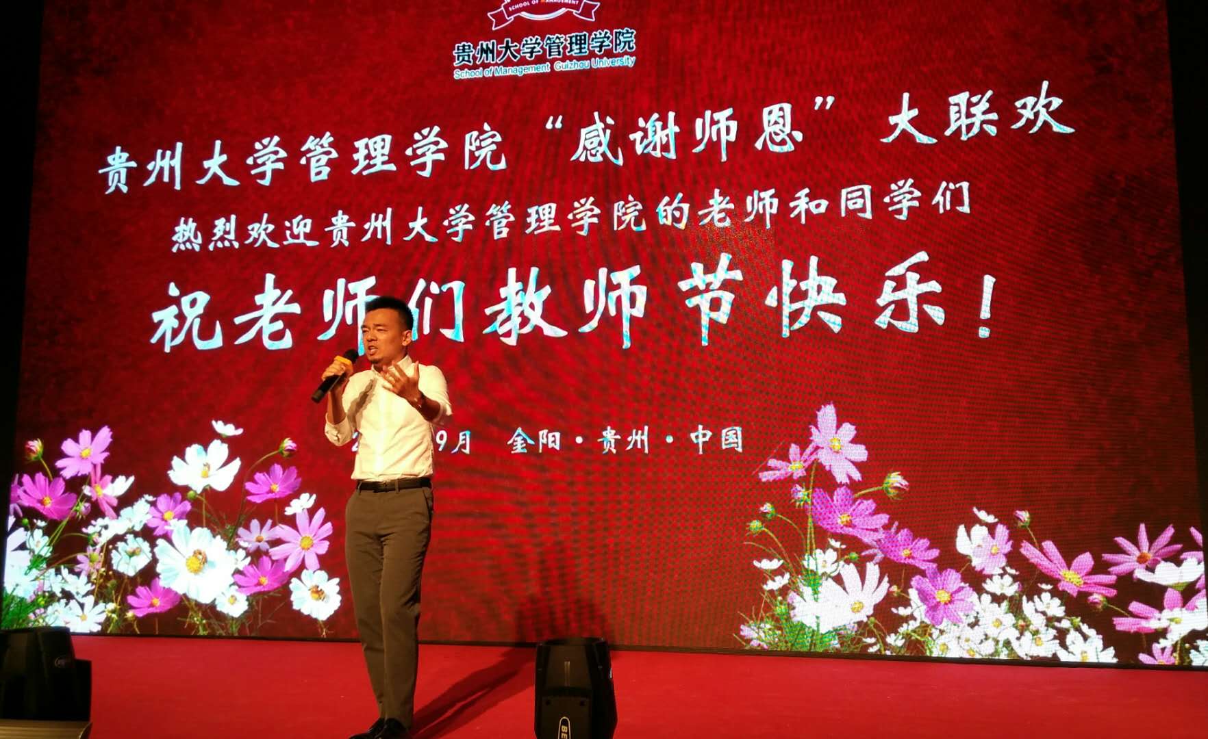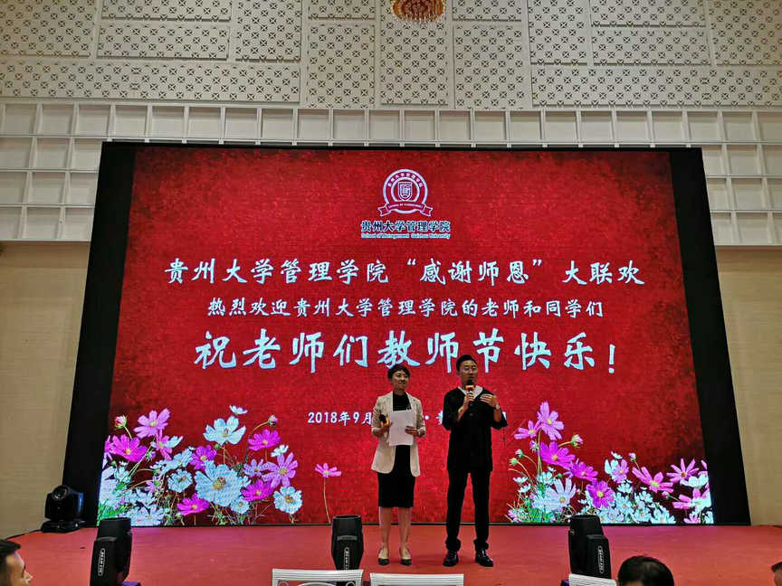 9月10日下午,乐动官方网站校友会大型活动“感谢师恩”大联欢在金阳国窖1573举办,本次活动由乐动官方网站主办,贵州大学校友总会管理学院分会承办,同时贵州国际酒类博览会股份有限公司与牟池酒业赞助支持。时值教师节,贵州大学管理学院院长李烨、副院长王婷、周莉莉、宋山梅,院党委副书记张亚军等200余名师生欢聚一堂,在歌声舞语之中,共同庆祝教师节。