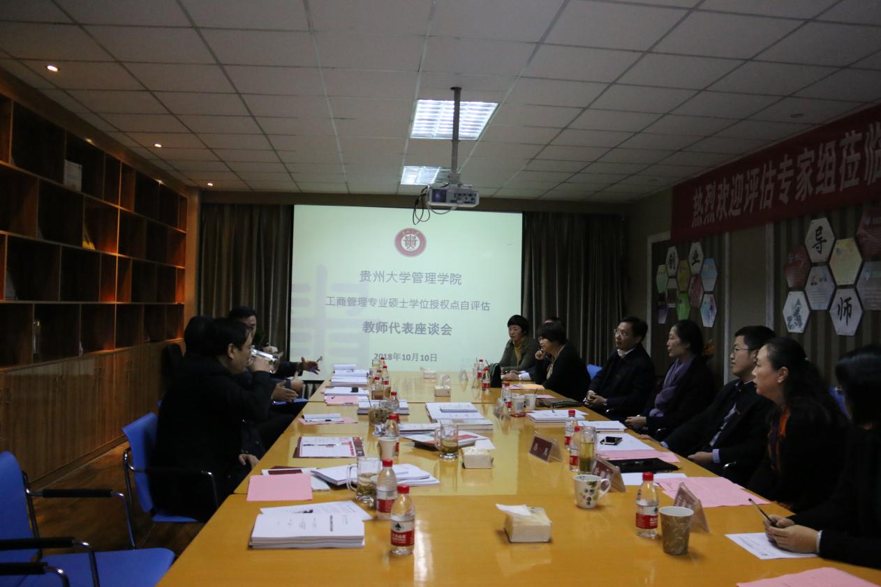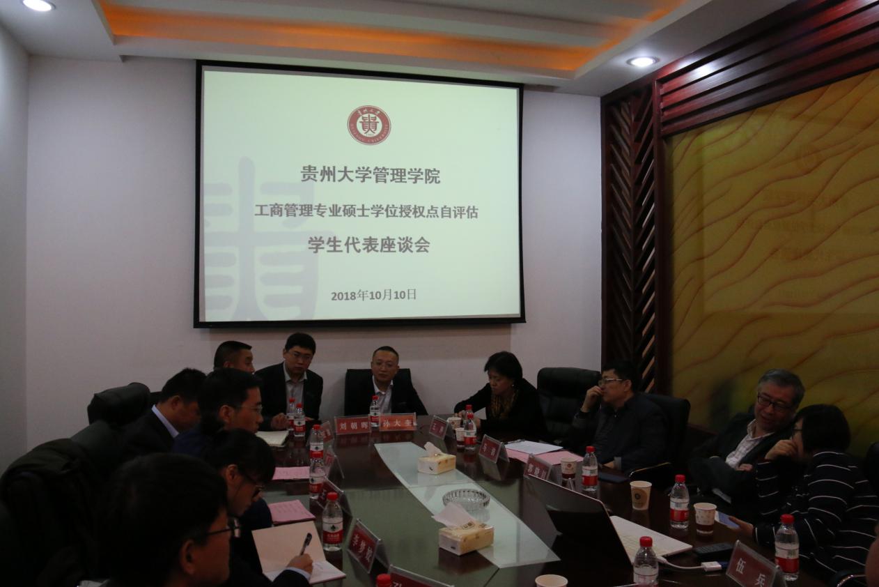 2018年10月10日上午,乐动官方网站工商管理专业学位授权点自评估专家评审会在我院创客中心举行。评审会邀请了全国MBA教育指导委员会委员、江西财经大学原副校长吴照云教授;全国MBA教育指导委员会委员、新疆财经大学创业管理学院院长马洁教授;全国MBA教育指导委员会秘书处办公室主任王萍女士;内蒙古大学校长助理郭晓川教授;复旦大学管理学院副院长殷志文教授;电子科技大学管理学院副院长滕颖教授;贵州楚天环保有限公司教授级工程师胡文董事长作为评估专家莅临本次评审会。贵州大学研究生院常务副院长杜滨教授、乐动官方网站院长李烨教授、乐动官方网站副院长宋山梅教授、乐动官方网站副院长周莉莉教授、乐动官方网站副书记张亚军、我院MBA/EMBA中心工作人员及本学位点教师代表和学生代表参加列席会议。