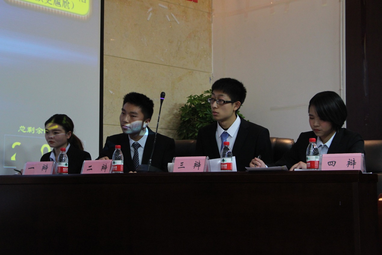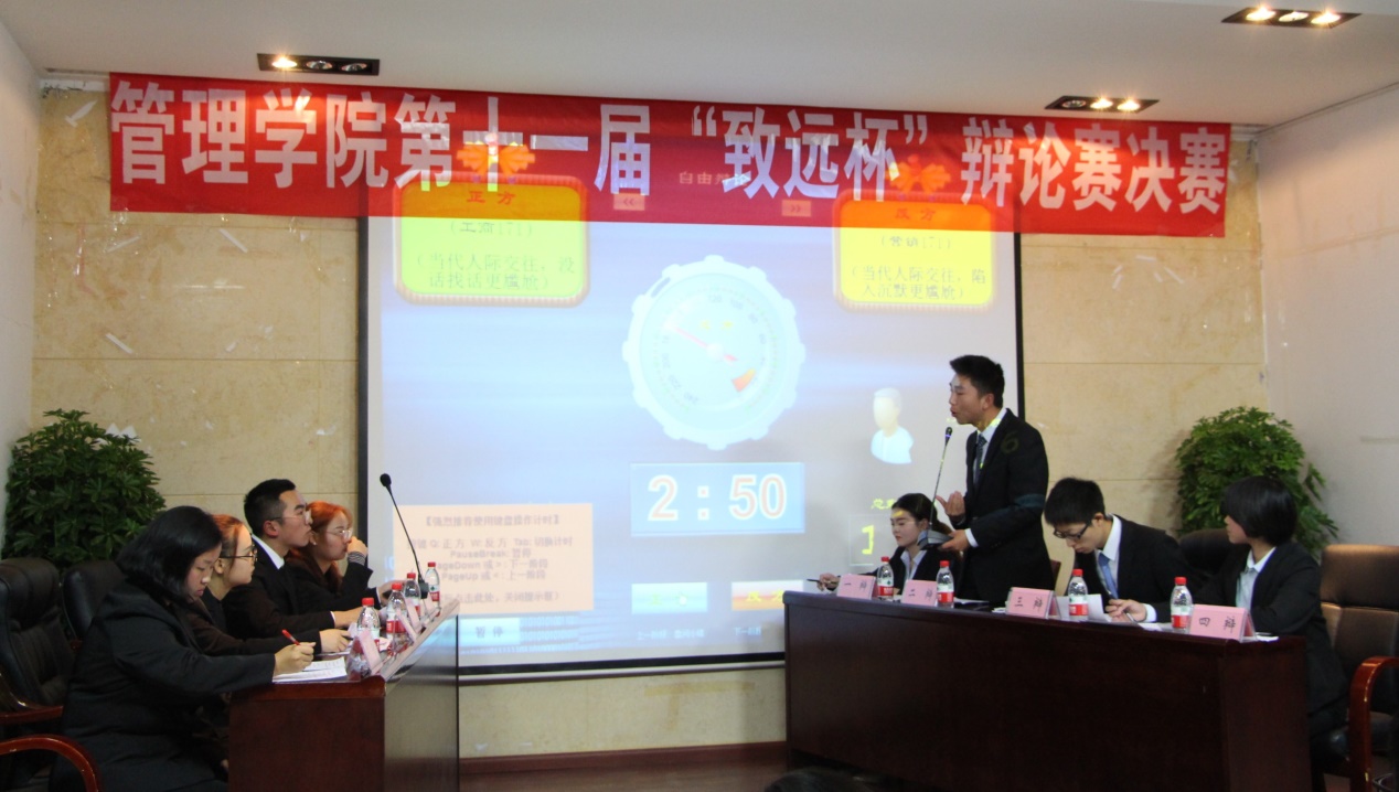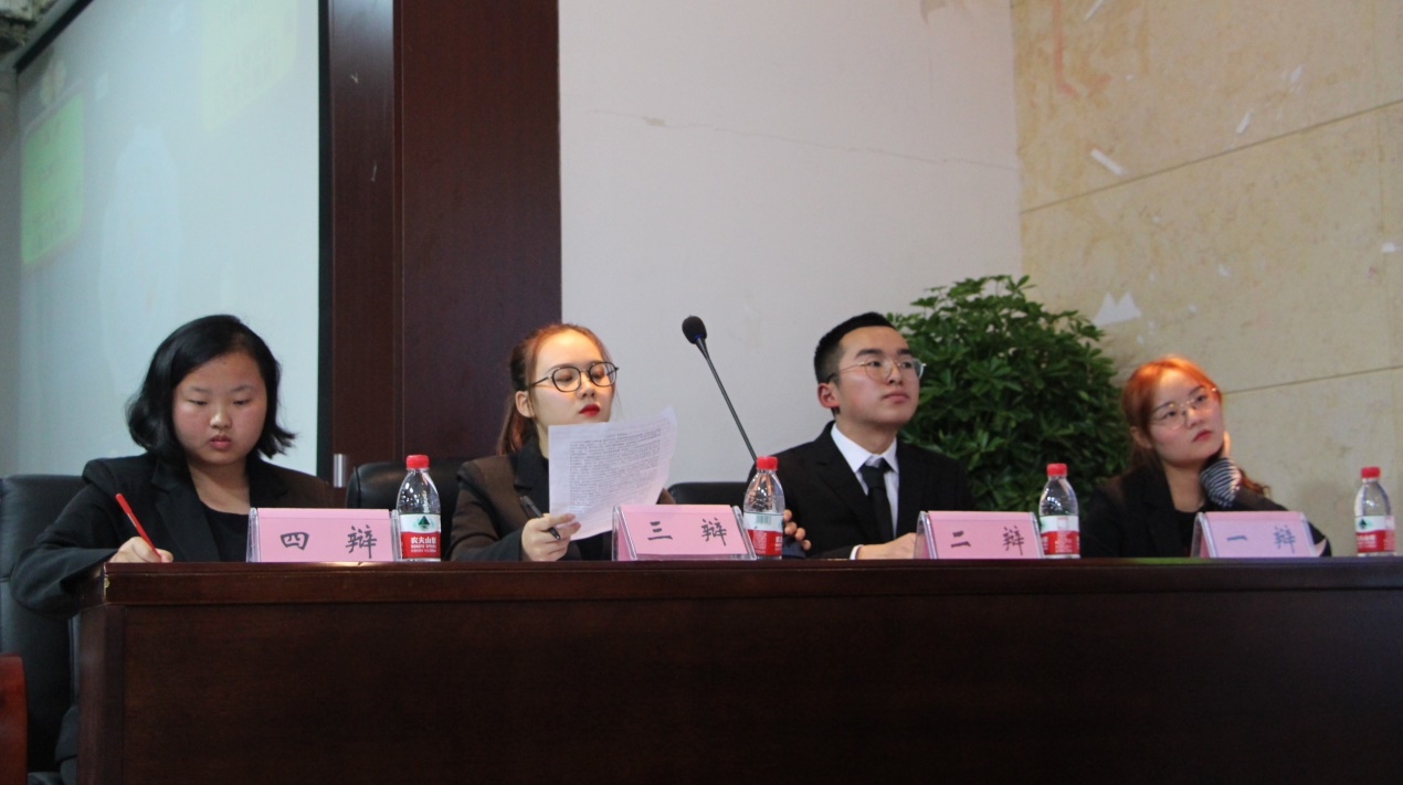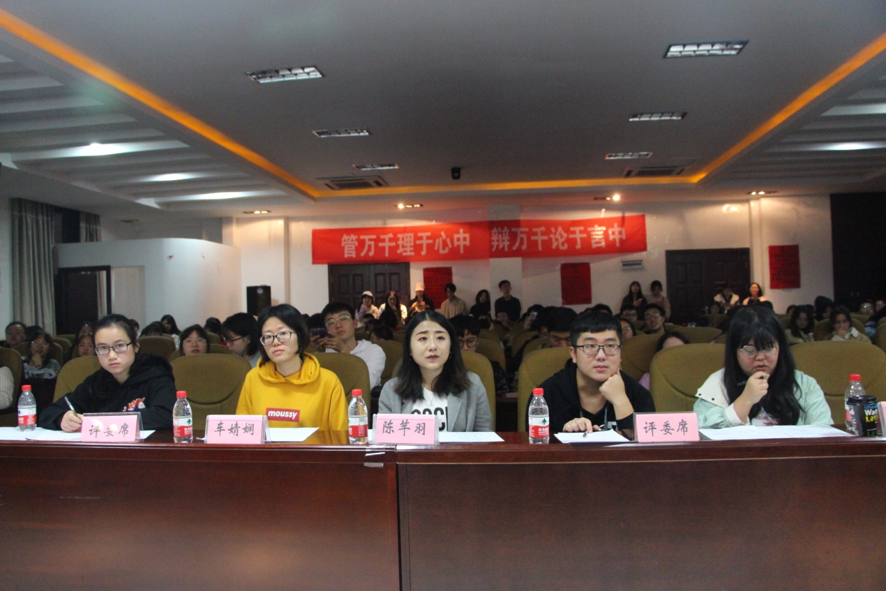 参赛正方工商管理171代表队与反方人力资源管理171代表队就“在人际交往中,没话找话和陷入沉默,哪个更尴尬”展开辩论,正方认为“在人际交往中,没话找话更尴尬”,反方则坚持“在人际交往中,陷入沉默更尴尬”。