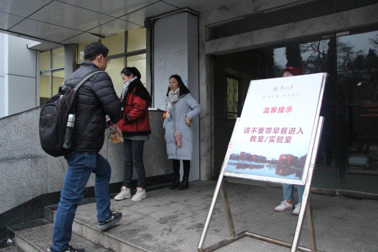 在采访过程中,执勤人员纷纷表示:“虽然需要早起并顶着寒风进行值班,但是一想到自己是为学校学风建设做贡献,是为贵大更美好的明天而奉献,便觉得这些付出很值得。”