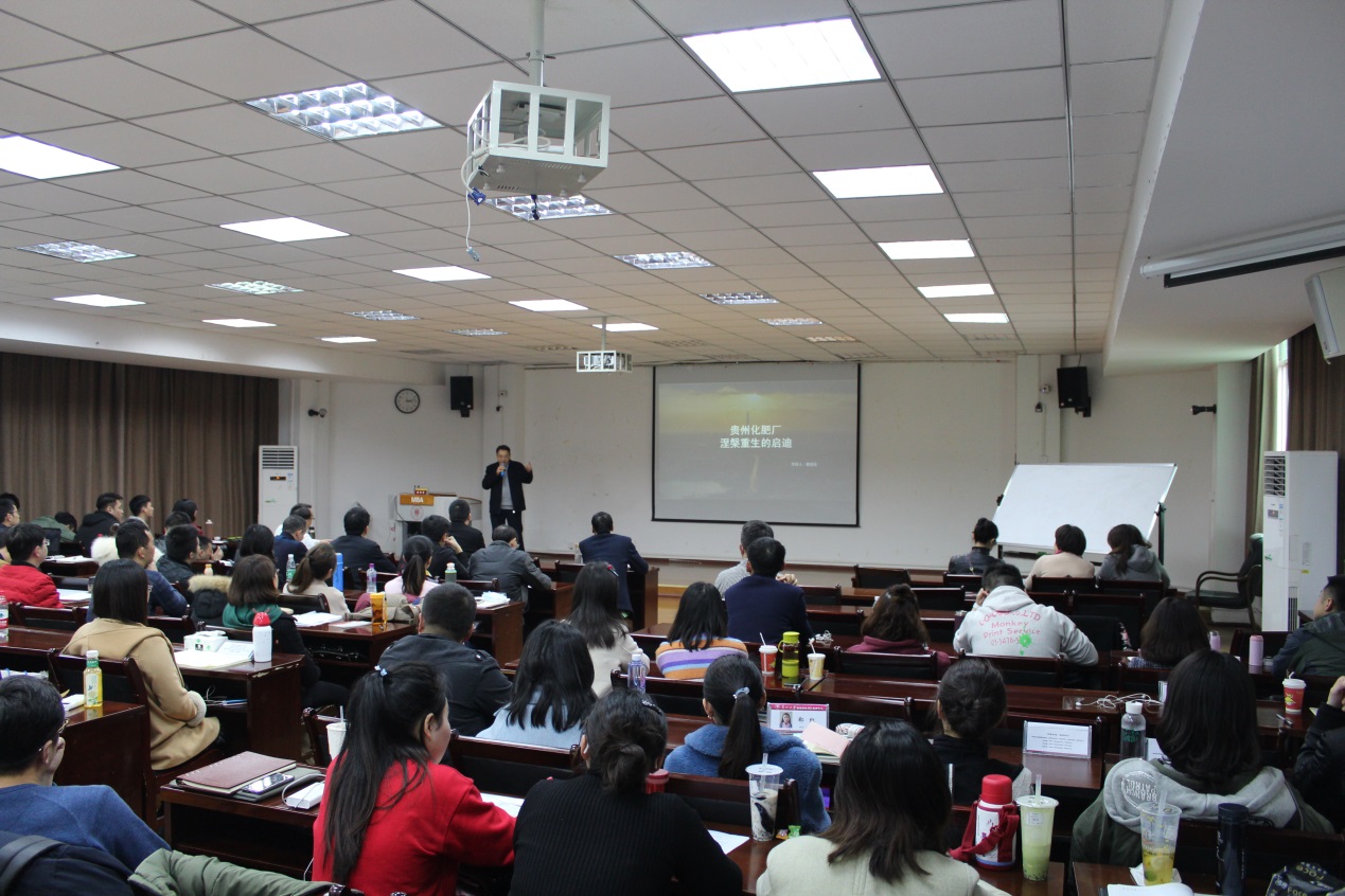 曹垒发董事长为乐动官方网站MBA学生开讲了《贵州化肥厂涅槃重生的启迪》的真实案例,分享了贵州化肥厂改制的艰辛和转型到能源行业五年来的成功及经验。课后在互动环节回答了学生们提出的有关问题。