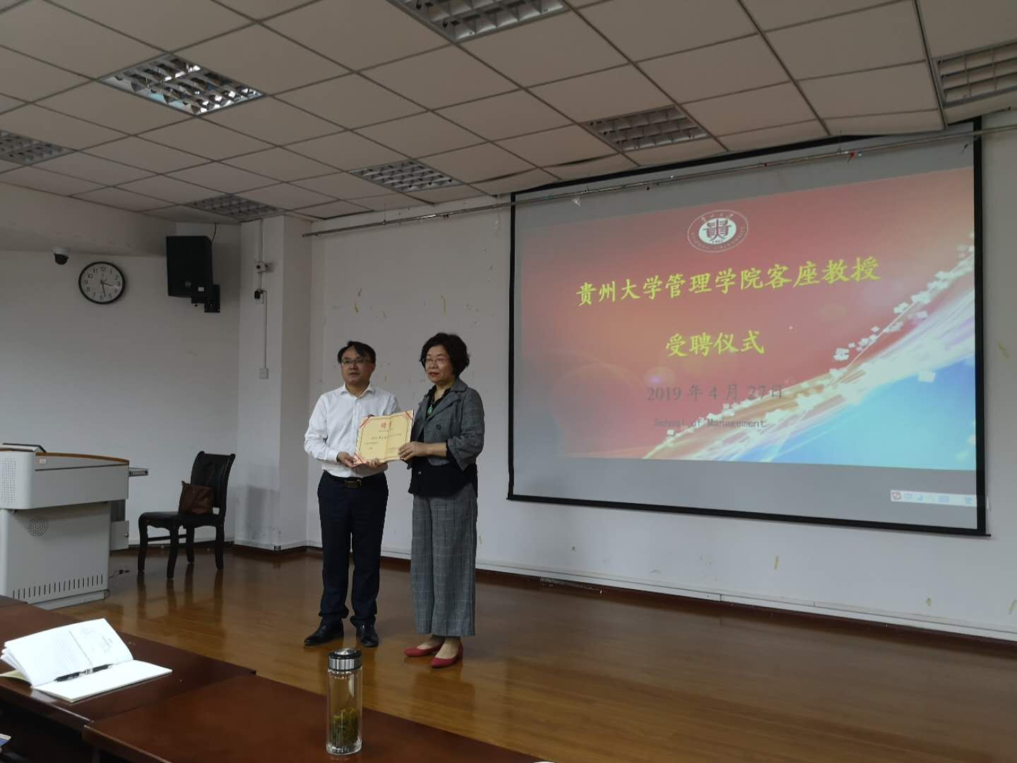接着,周莉莉教授宣布聘请周文霞教授为乐动官方网站客座教授,乐动官方网站院长李烨教授亲自颁发聘书!