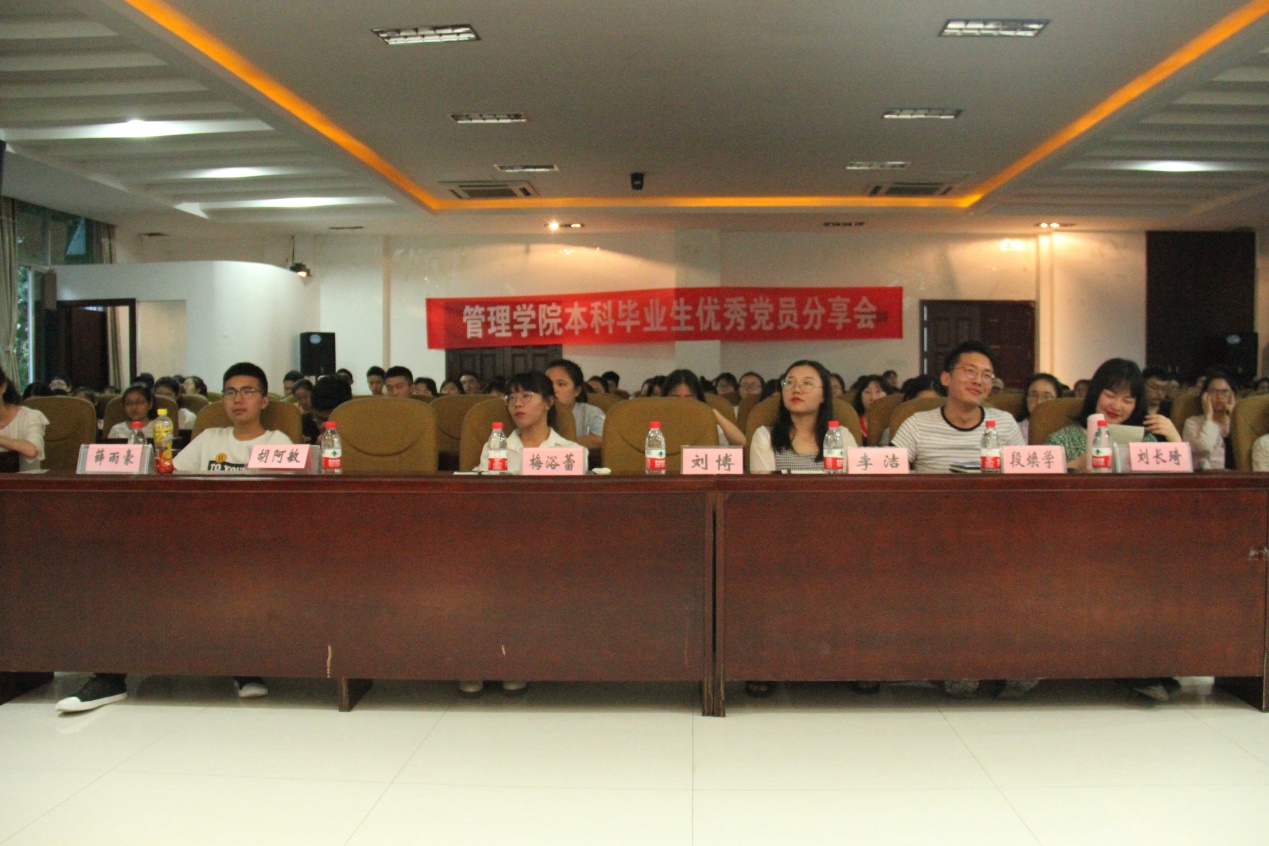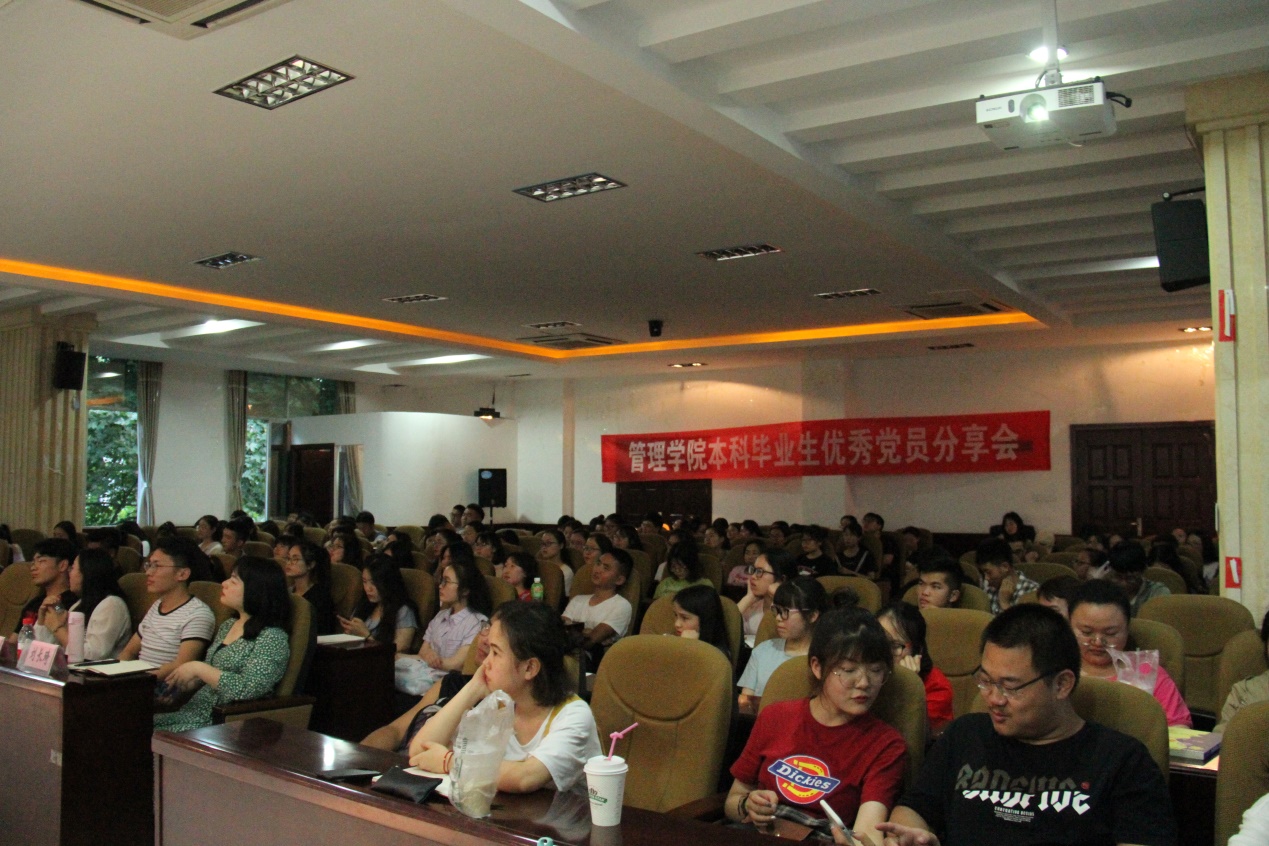 为了加强我院学风建设,帮助同学们坚定自己的目标和理想,让优秀的学长学姐的宝贵经验造福更多的学子,让同学们汲取更多关于入党、考研、保研、就业的经验,解除他们的困惑,从而使他们可以更好地为自己的将来准备,提前做好学习和就业规划。614日晚7点,乐动官方网站在学院三楼报告厅举办了“乐动官方网站2019届优秀毕业生分享会”。本次分享会特邀了我院获得了“保研”资格的财管151班薛雨豪、工程151班梅浴蕾、营销151班胡阿敏、工业151班刘博、人资151班段焕学、工商151班刘长琦,成功“考公”的会计151班李杰和两位特邀考研生工业151班任旖旎和杨淑贤等优秀党员毕业生代表出席, 20162017级管理学院部分学生参与本次分享会。