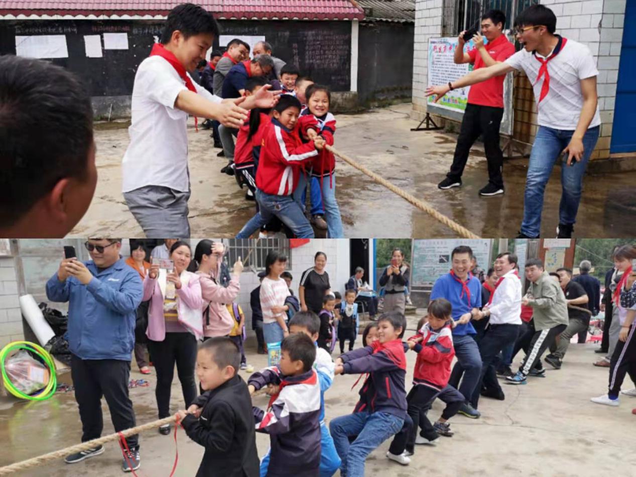慰问团队首先在梅子冲村委会开展小学生捐助仪式,为丹霞镇中心小学的35位同学们送去了学习用品,并与学生们进行拔河比赛,让孩子们深切感觉到来自大山外面的青年们对自己的关爱。通过这次捐助鼓励贫困学生要好好学习,开心健康成长,用知识改变命运,努力成长为国家栋梁之材,回报社会。