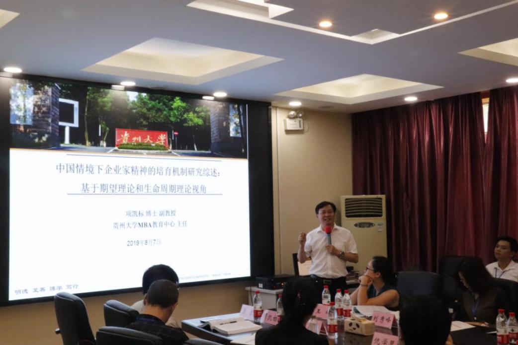 2019年8月7日, “融合与创新:新时代背景下的中国文化与管理学术研讨会”在贵州大学东校区行政楼一楼1 号报告厅隆重举行。贵州大学党委书记李建军教授出席开幕式,来自全国20多所高校的近100名学者济济一堂,围绕中国文化与管理融合与创新中所面临的理论与实践问题展开探讨。管理学院院长李烨教授、MBA中心主任/工商系主任项凯标副教授及管理学院多位老师参加了此次学术研讨会。