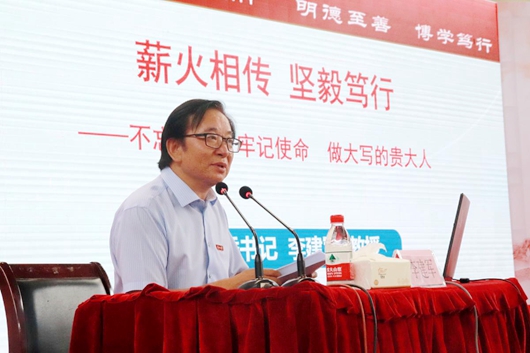 9月17日下午,校党委书记李建军在东校区体育馆为2019级研究生新生作题为《薪火相传 坚毅笃行——不忘初心、牢记使命 做大写的贵大人》的主题报告。管理学院MBA新生共计300余人到场聆听报告。