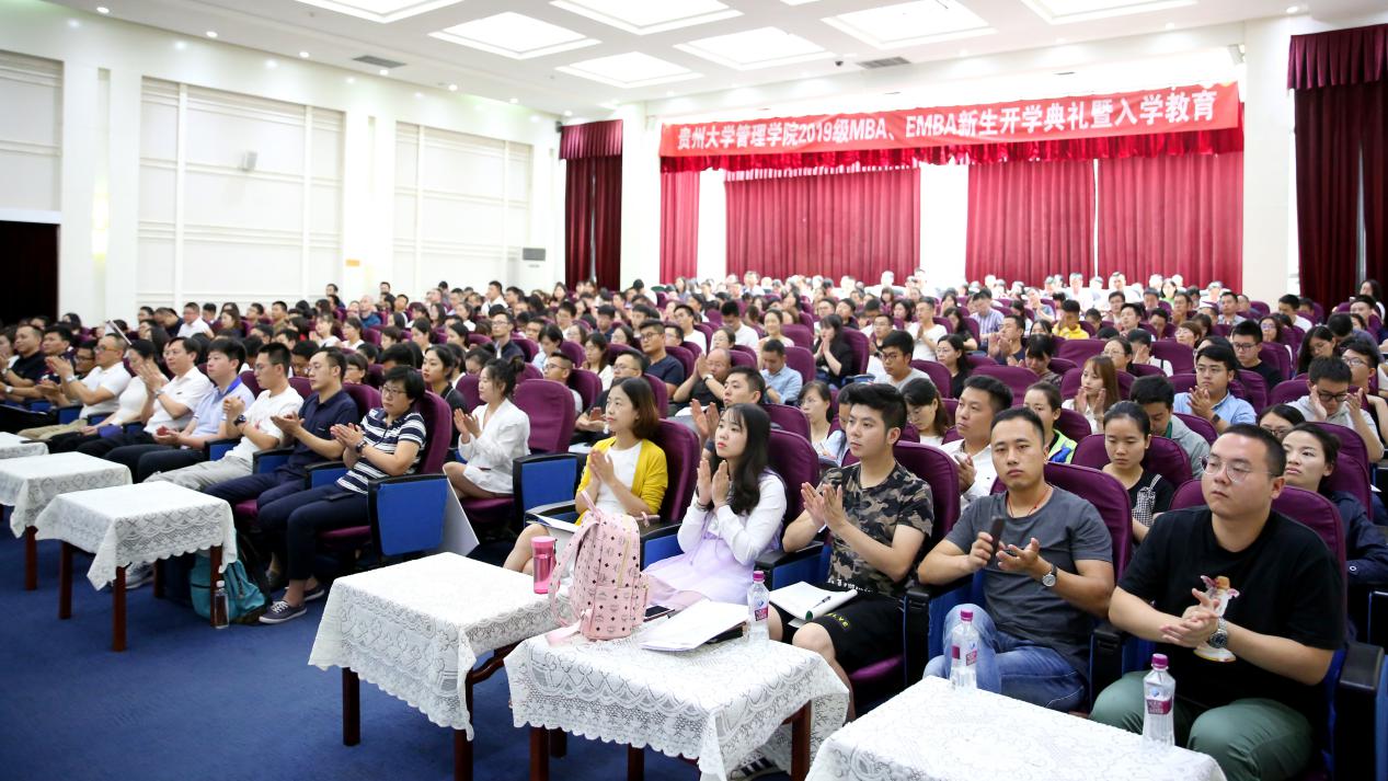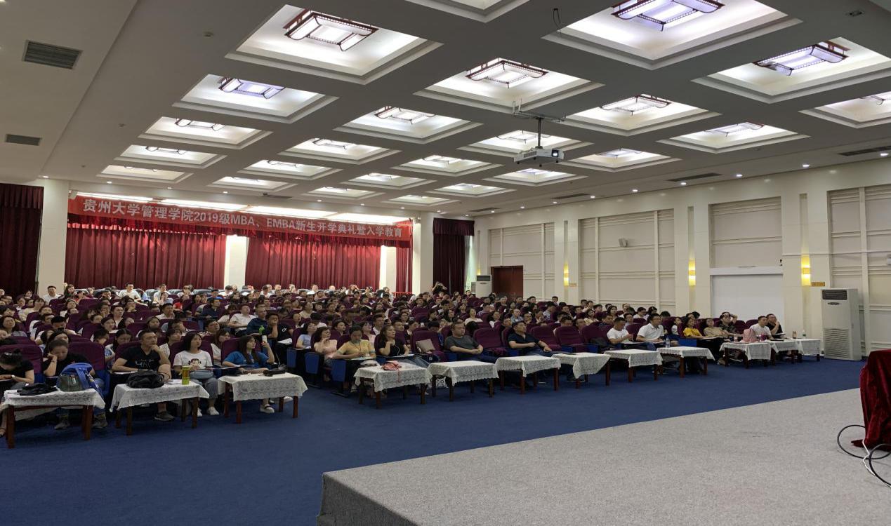 贵州大学研究生院院长杜滨教授、贵州大学研究生工作部部长罗勇副教授、乐动官方网站党委书记王秀峰教授、乐动官方网站院长李烨教授、乐动官方网站副院长王婷教授、乐动官方网站副院长周莉莉教授、乐动官方网站副书记张亚军老师、乐动官方网站MBA导师代表许为宾教授、各班班主任老师以及MBA和EMBA全体工作人员、300余名MBA新生和50余名EMBA新生参加了此次开学典礼。