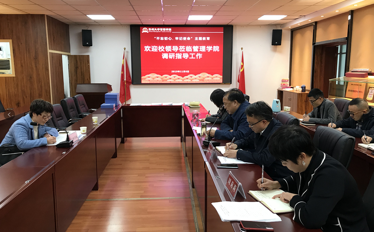 11月6日下午2:30,贵州大学党委副书记令狐彩桃到管理学院就主题教育工作开展情况进行调研指导,学院领导班子成员、各科室负责人和党支部书记参加会议,会议由党委书记王秀峰主持。