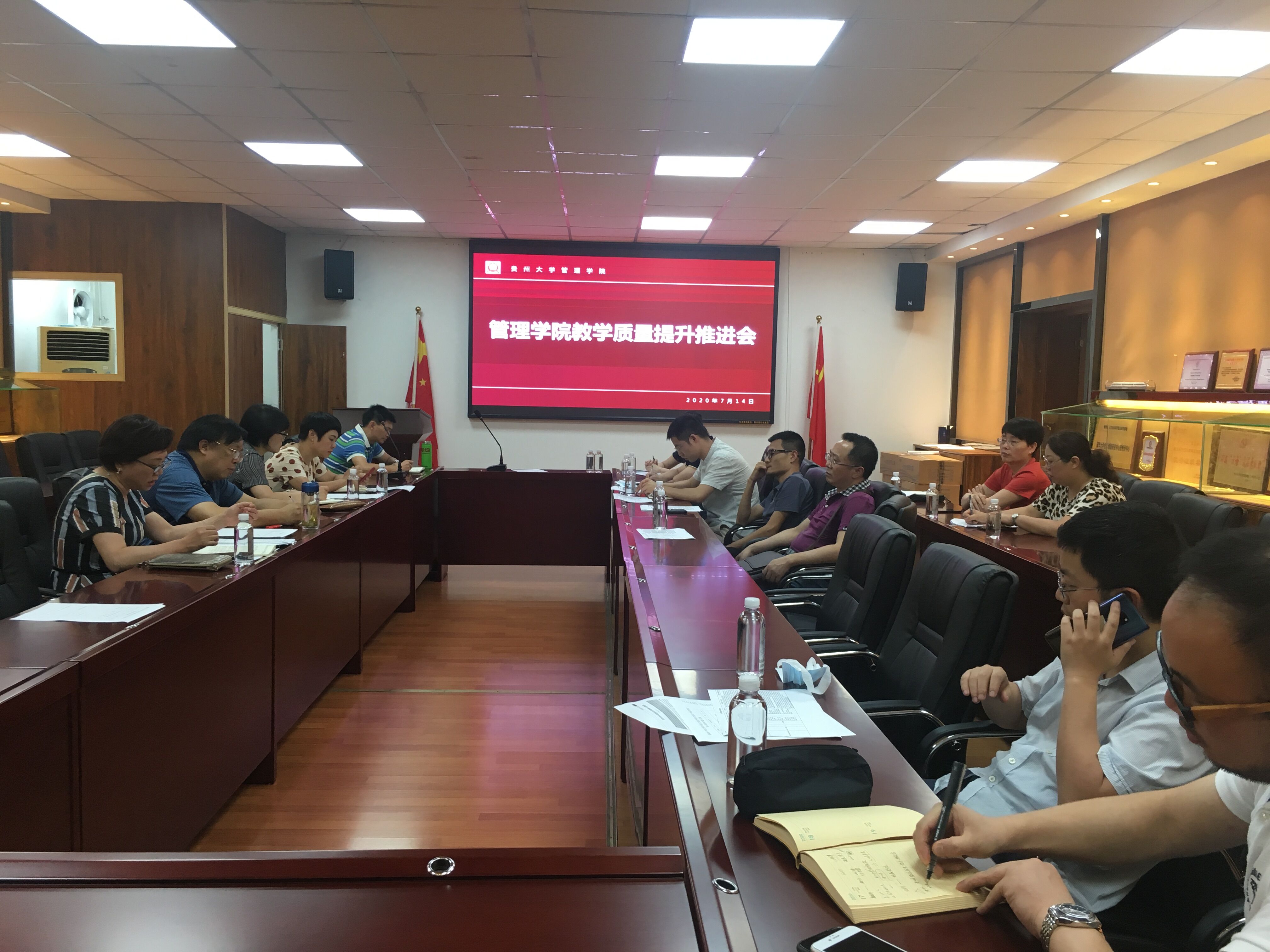 为切实推进本科教学质量提升计划的落实开展,进一步提高人才培养质量,我院于7月14日中午12:00,在管理学院陈列室召开本科教学质量提升推进会。院党委书记王秀峰,副院长王婷、周莉莉、宋山梅出席会议,各系系主任、副主任,研究生科、教学科、学生科科长,院办公室主任共十余人参加会议。分管教学副院长宋山梅主持会议。