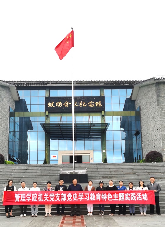 参观人员先后来到猴场会议纪念馆、猴场会议会址开展党史学习教育。在讲解员的带领下,瞻仰了革命烈士使用过的物件、照片、标语等,这些纪实的资料图片仿佛呈现了红军当年的百折不挠、舍生取义、运筹帷幄的画面,无不让我们在场的同志心灵触动,同时也意识到中国共产党的光辉历程。在猴场会议会址参观时,管理学院党委副书记洪影秋同志带领大家重温入党誓词,让支部党员同志达到学史明理、学史增信、学史崇德、学史力行的目的。