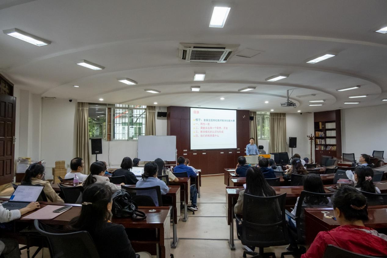 培训会上,林岚涛以首届全国高校教师教学创新大赛为楔子,为大家详细介绍了大赛评分标准以及学校备赛情况,并从以下四个方面展开培训: