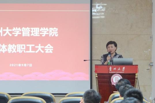 会上,院党委书记王秀峰传达了习近平总书记七一重要讲话精神省委副书记、省长李炳军在贵州大学调研指示精神,以及贵州大学2021年秋季学期开学工作会暨高质量发展工作推进会议精神,并就上学期工作作简要总结、研究部署新学期相关工作。他指出,学习贯彻党的重要理论精神,是当前和今后时期的重大政治任务,我们要切实提高政治站位,做到在工作中自主学、自觉学、自愿学,将理论与实践相结合,高站位、高标准、高质量、高效率推进党史理论学习教育各项任务落到实处、细处、深处。他强调,贵州大学作为贵州一流高校,师生作为贵州区域乡村振兴工作先锋队队员管理学院作为管理型人才培养基地,要充分扎根贵州大地、利用专业优势,在科教文卫和农林牧渔中主动建言献策,发挥示范引领作用,勇担贵州人民生活水平日益提高的助推器责任他希望,全院教职工再接再厉,在新学期继续将学科和产业深度融合,给产业镀金,将学科落实,把乡村振兴事业牢记在心真正为学校“部省”合建和双一流建设添砖加瓦,为开创百姓富生态美多彩贵州新未来注入源源不断的动力