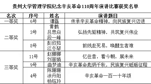 随后,管理学院研究生科科长徐兰老师说,今年是辛亥革命110周年,是中国共产党成立100周年,在这个重要时刻,我们在这里以演讲比赛的形式纪念辛亥革命,缅怀孙中山先生等民主革命先烈,各位参赛选手不仅发扬了中华民族优秀革命先驱与时俱进的革命精神,同时展现出我院研究生青年良好的精神风采。