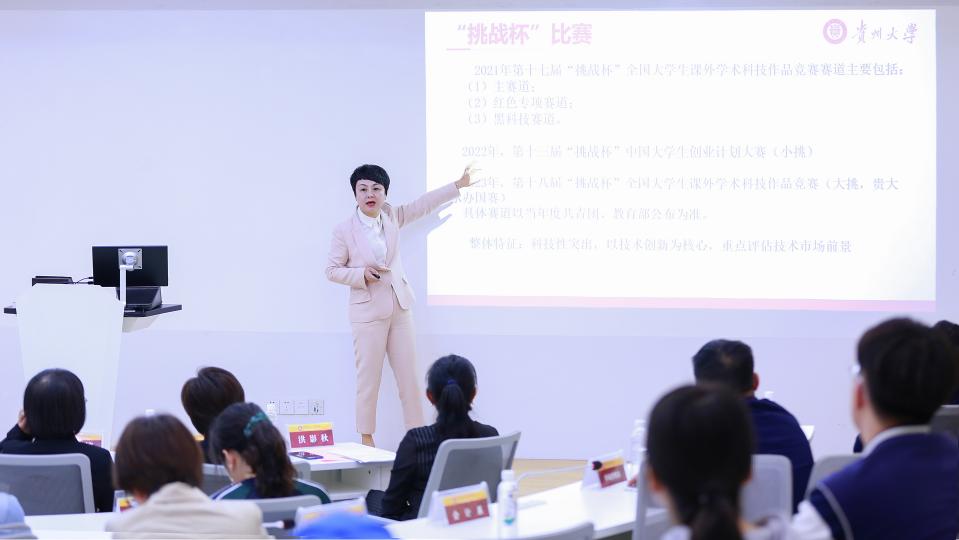 本次大会以鼓舞先进、树立典型、鼓舞士气为目的,分别表彰了“国赛获奖团队”、“省赛获奖团队”、“优秀指导教师”等团队和个人。随后播放了第十八届“挑战杯”贵州大学邀请视频。