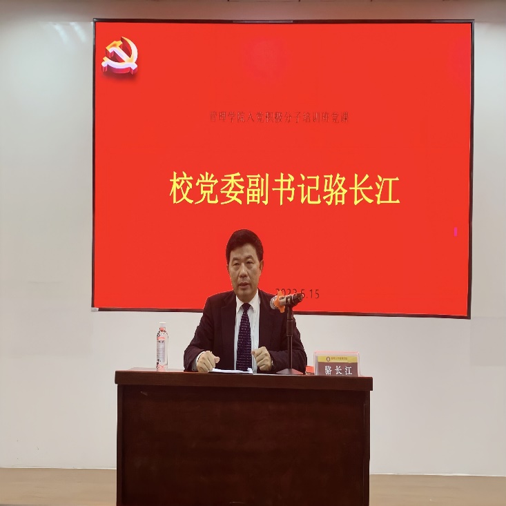“不经一番寒彻骨、哪得梅花扑鼻香。”骆书记对同学们语重心长地说到要保持良好的精神风貌,要积极关注中央、省委发布的相关讯息,把握时代脉搏,争做时代新人,同时结合管理学院学子特色,广泛涉猎知识,自由全面发展,争取为党和人民贡献更大力量。骆书记还以自身经历勉励同学们,要保持自律,勤加锻炼努力学习,面对挫折要迎难而上,要以全新的姿态、昂扬的斗志面对人生,走向未来。同时,他希望同学们加强理论学习、坚定政治立场、端正入党动机,积极向党组织靠拢,争取早日成为一名光荣的共产党员。