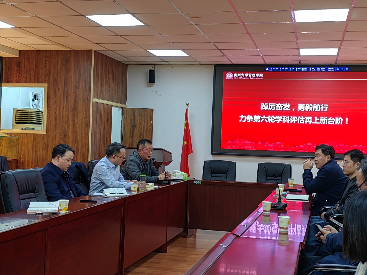 贵州大学原常务副校长,管理科学与工程学科带头人王红蕾教授、校发展规划处处长冉光圭教授、校人文社科处副处长周乐欣教授、数学与统计学院副院长胡支军教授以及管理学院院长李烨教授、校党委正处级组织员、院党委副书记(主持党委工作)周莉莉教授、副院长李本光教授、副院长王婷教授出席了本次会议,管理科学工程系的教师参加了会议。会议由李烨院长主持。