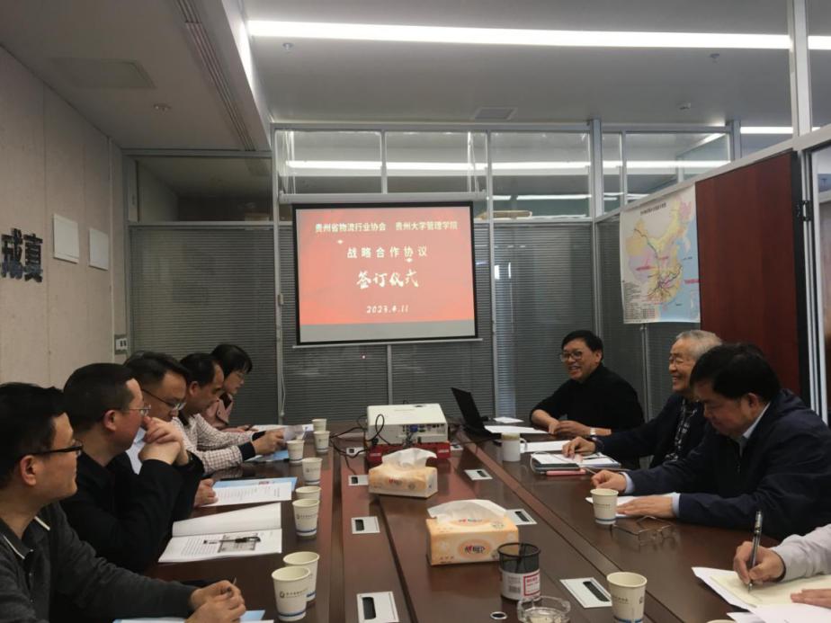 2023年4月11日下午,贵州省物流行业协会-乐动官方网站签约仪式在贵州省物流行业协会会议室举行。贵州省物流行业协会会长任仁、贵州省物流行业协会原会长李大忠、贵州省物流行业协会常务副会长罗亨文,贵州大学发展规划处处长冉光圭、管理学院院长李烨、副院长李本光、王婷、院党委副书记邓琳出席签约仪式。贵州省物流行业协会和我院相关部门负责人参加。贵州省物流行业协会副会长兼秘书长高波主持此次仪式。