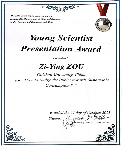 此次会议根据论文选题、演讲能力、报告内容和问题回答等四个方面,对全体参会学生的学术报告进行了评估,对其中优秀者颁发青年科学家最佳论文奖。其中,乐动官方网站博士生孙昕荣获一等奖,硕士生邹紫莹荣获二等奖,硕士生杨莉杉、贾婷文荣获三等奖。