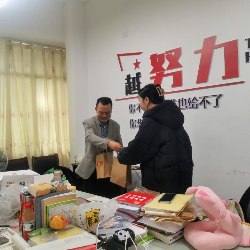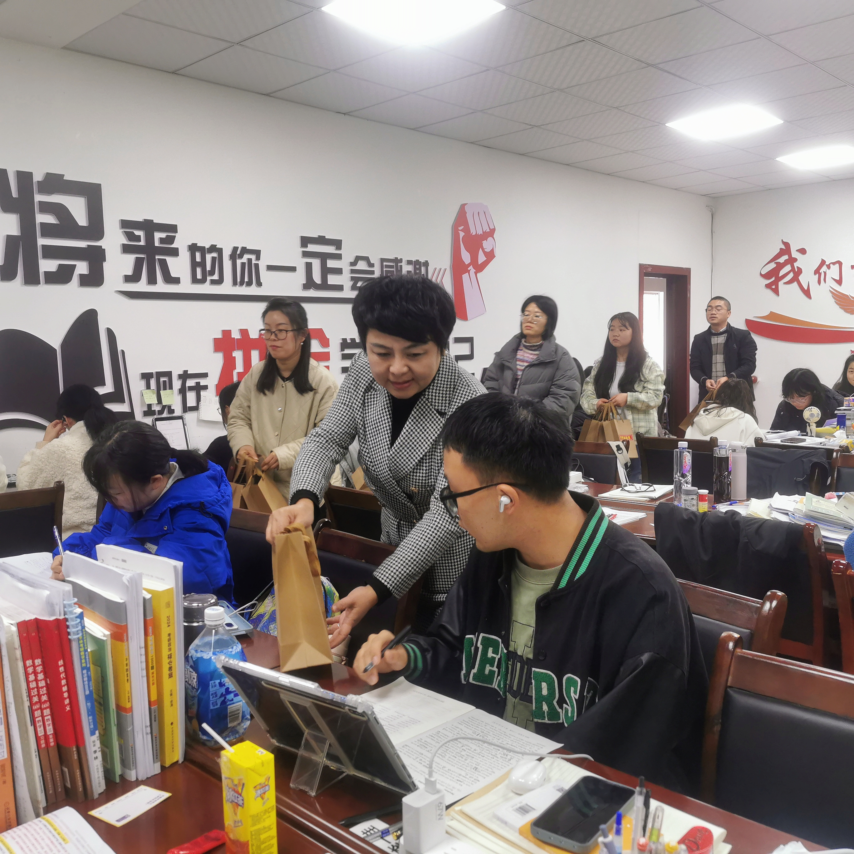 2024年全国硕士研究生招生考试进入最后倒计时,为陪伴考研学子共同度过这一重要阶段,学院安排了院领导、系主任、辅导员、班主任、副班主任等值班,为考研学子加油鼓劲的同时。于12月12日中午,管理学院特举办考研慰问活动,为即将参加考试的同学们送去关心和祝福。此次活动由贵州大学党委常委、副校长赵留彦教授,携管理学院领导班子及辅导员作为代表,共同前往学院考研自习室为同学们送上暖心加油包,激励他们全力以赴、笃志前行,跑赢考研这场“马拉松”。