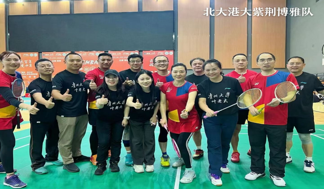 贵州大学大学管理学院EMBA校友组成的“贵州大学EMBA叶老大羽毛球队”先后与中欧商学院、厦门大学、紫荆博雅(香港城市大学/北京大学联队)、对外经贸大学、清华大学、郑州大学六支EMBA羽毛球队团体比赛,取得三胜三负的成绩,在学员常规组获得第十届全球商学院EMBA羽毛球团体赛第25名的好成绩。同时获得单项比赛90+混双(关承胤/钱柳睿)季军、男双100+(蒋元伟/胡文)第11名、青年混双(申霖/詹燕茹)第11名的成绩。