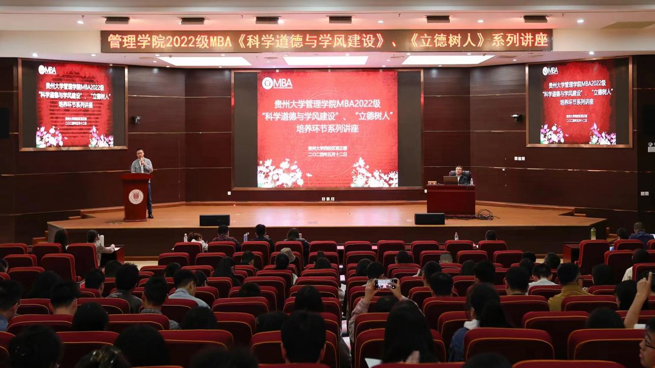 2024年5月12日,乐动官方网站MBA教育中心在贵州大学贤正楼107报告厅举办了《科学道德与学风建设》、《立德树人》系列讲座,讲座分四场进行,分别由乐动官方网站院长李烨教授,贵州大学党委正处级组织员、管理学院党委副书记(主持党委工作)周莉莉教授,乐动官方网站党委副书记邓琳,乐动官方网站副院长许为宾教授主讲,260余名2022级MBA学生到场聆听。讲座由乐动官方网站MBA教育中心常务副主任何跃勇老师主持。