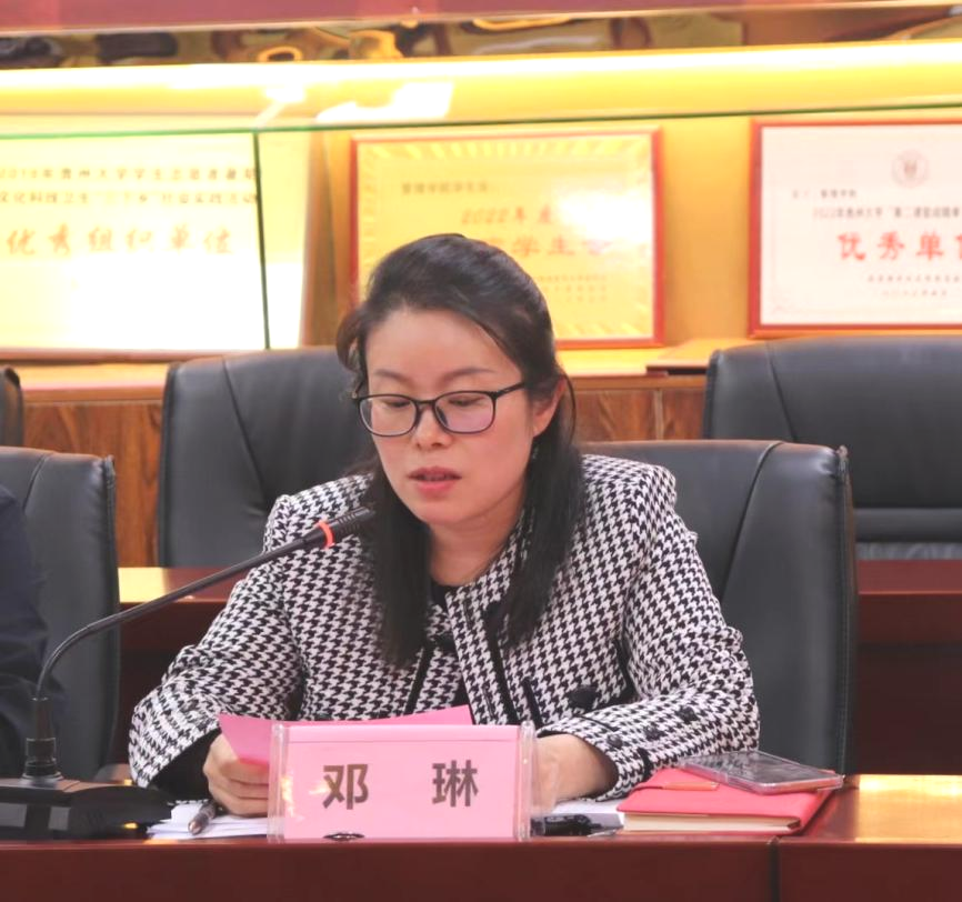 随后,学生科车婧娴老师通报了学院2024届本科生毕业生当前去向的落实情况。她汇报了系统实际录入的情况、目前毕业生的就业情况、考公考研以及留学情况。她希望班主任老师们在毕业生在校期间,尽量与尚未就业的学生沟通并给予鼓励,同时对困难家庭的学生进行一对一帮扶,以缓解他们的就业压力,促进高质量就业。
