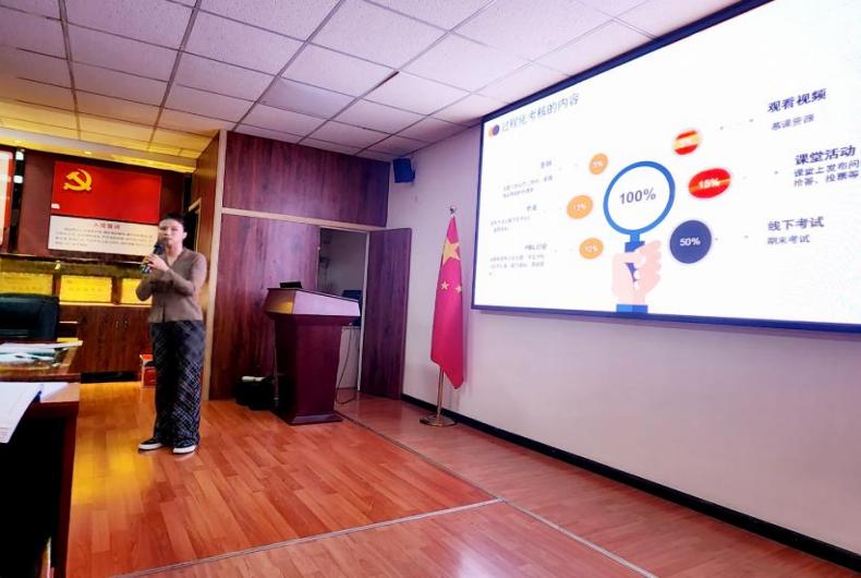 在教学试讲环节,省级金课负责人陈媛媛老师围绕《微观经济学》课程过程化考核展开分析。《微观经济学》课程建立了多样化的课程考核模式,为每个考核项目设计明确的评价方式和评价数据来源,兼顾课堂内外、线上线下,形成了由考勤、作业、PBL讨论、观看视频、课堂活动、线下考试等多种形式组成的课程考核要素。陈老师指出,过程化考核有助于培养学生的专注度,提高学生的自主学习能力,营造良好的学习氛围。随后,与会教师畅所欲言,结合不同课程的特色对“如何有效开展过程考核”提出合理化建议,为进一步规范课程考核提供了重要依据。