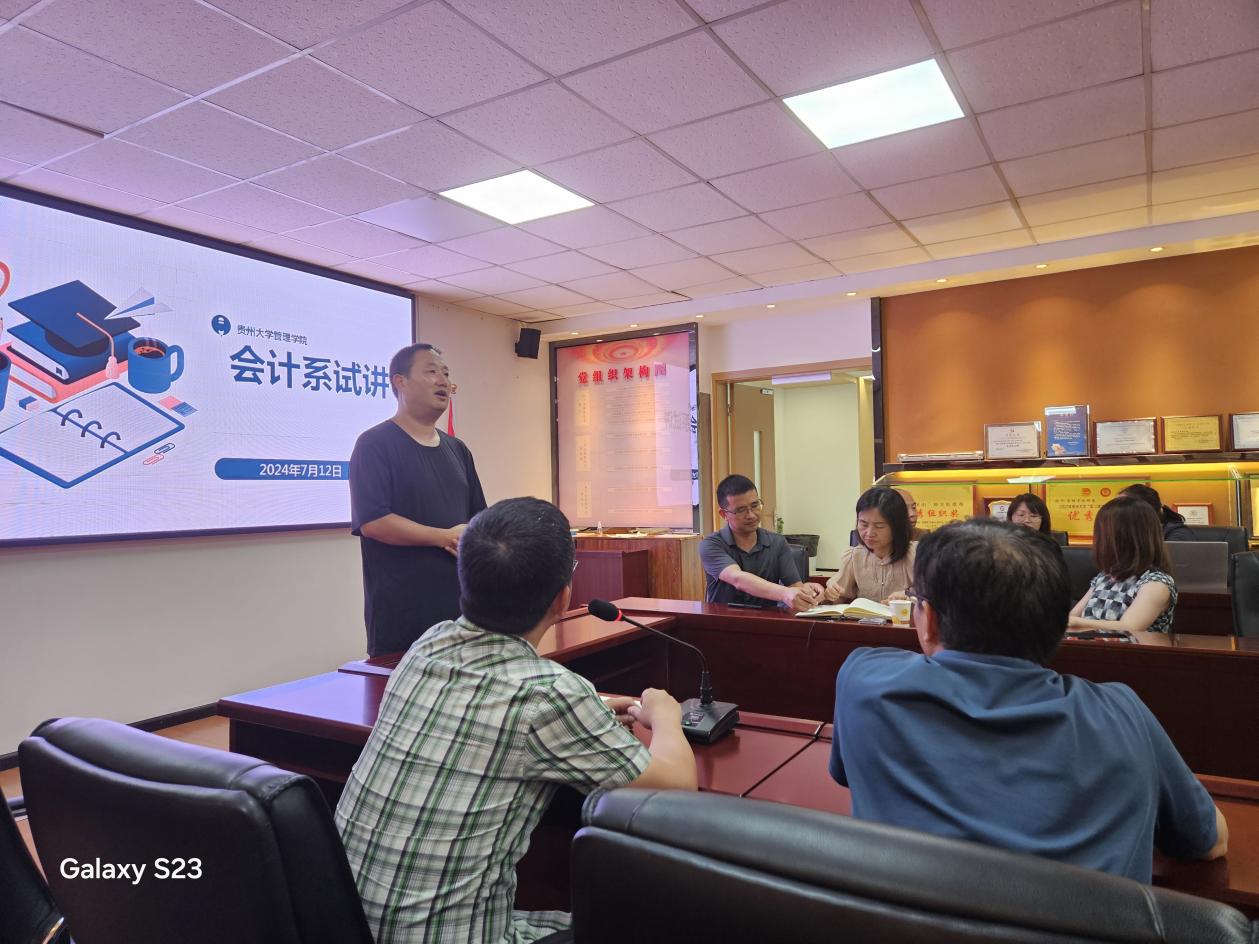 2024年7月12日,会计教研室组织全体教师召开了集体备课和试讲教研活动,旨在迎接教学评估,提高教学质量,提升教学效果。