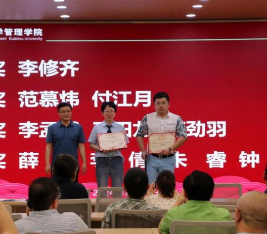 会议第二项,青年教师教学大赛获奖表彰。学院领导为获奖教师颁发荣誉证书并合影留念。李烨院长肯定了各位参赛老师在比赛中的表现,并对大家表示热烈祝贺,鼓励大家在更高级别的教学大赛中再创佳绩。