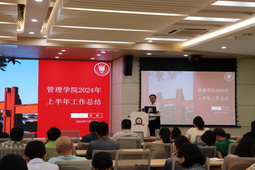 会议第六项,李烨院长对2024年上半年工作进行总结,对党纪学习教育、师生安全、本科教育教学审核评估、科研工作、服务社会等作了进一步强调和部署。他对学院在党建引领、思政建设、学科竞赛等方面取得的成绩给予肯定,同时要求全体教职工关注产践融合、学术交流、高水平论文发表等短板问题,共同努力提升学院整体发展水平。同时还特别提醒大家在假期中注意安全、合理安排时间,为新学期的工作做好充分准备。