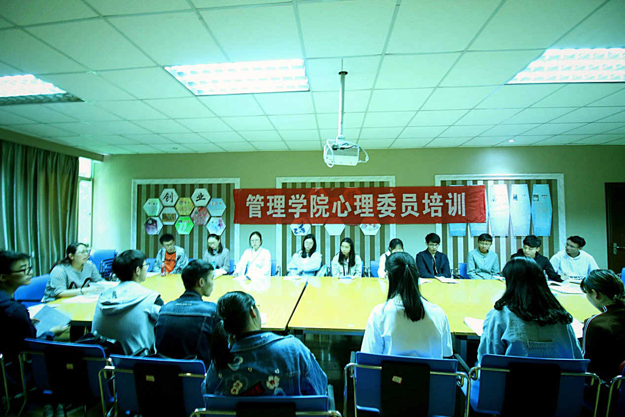 2018年4月18日中午12:40,管理学院班级心理委员培训会在二楼创客空间会议室召开,培训会由学生科科长芮丽华老师主持,2015级、2016级各班心理委员参加会议。