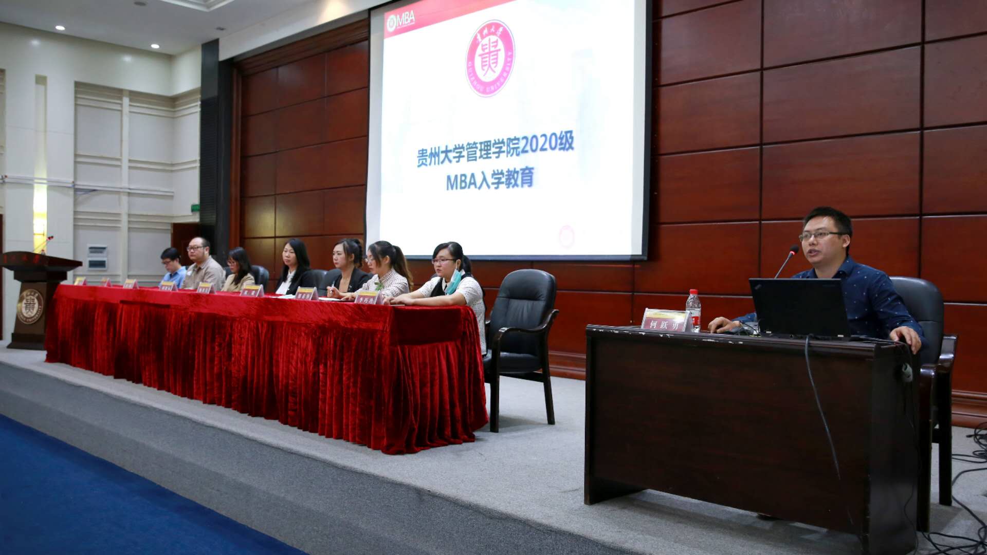 贵州大学研究生院院长杜滨教授、乐动官方网站党委书记王秀峰教授、乐动官方网站院长李烨教授、乐动官方网站副院长王婷教授、乐动官方网站副院长宋山梅教授、乐动官方网站副院长周莉莉教授、贵州大学管理学院MBA导师代表张莉副教授、管理学院各科室及部门负责人、系主任,各班班主任老师以及MBA和EMBA全体工作人员、300余名MBA新生、100余名EMBA及管理学院全日制研究新生参加了此次开学典礼。