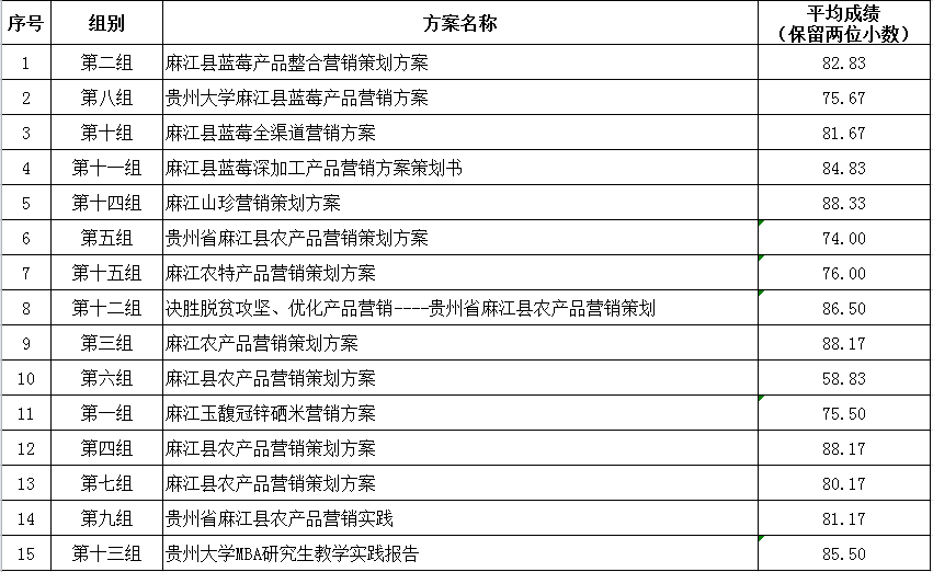 贵州省麻江县农产品营销大赛(初赛)成绩表