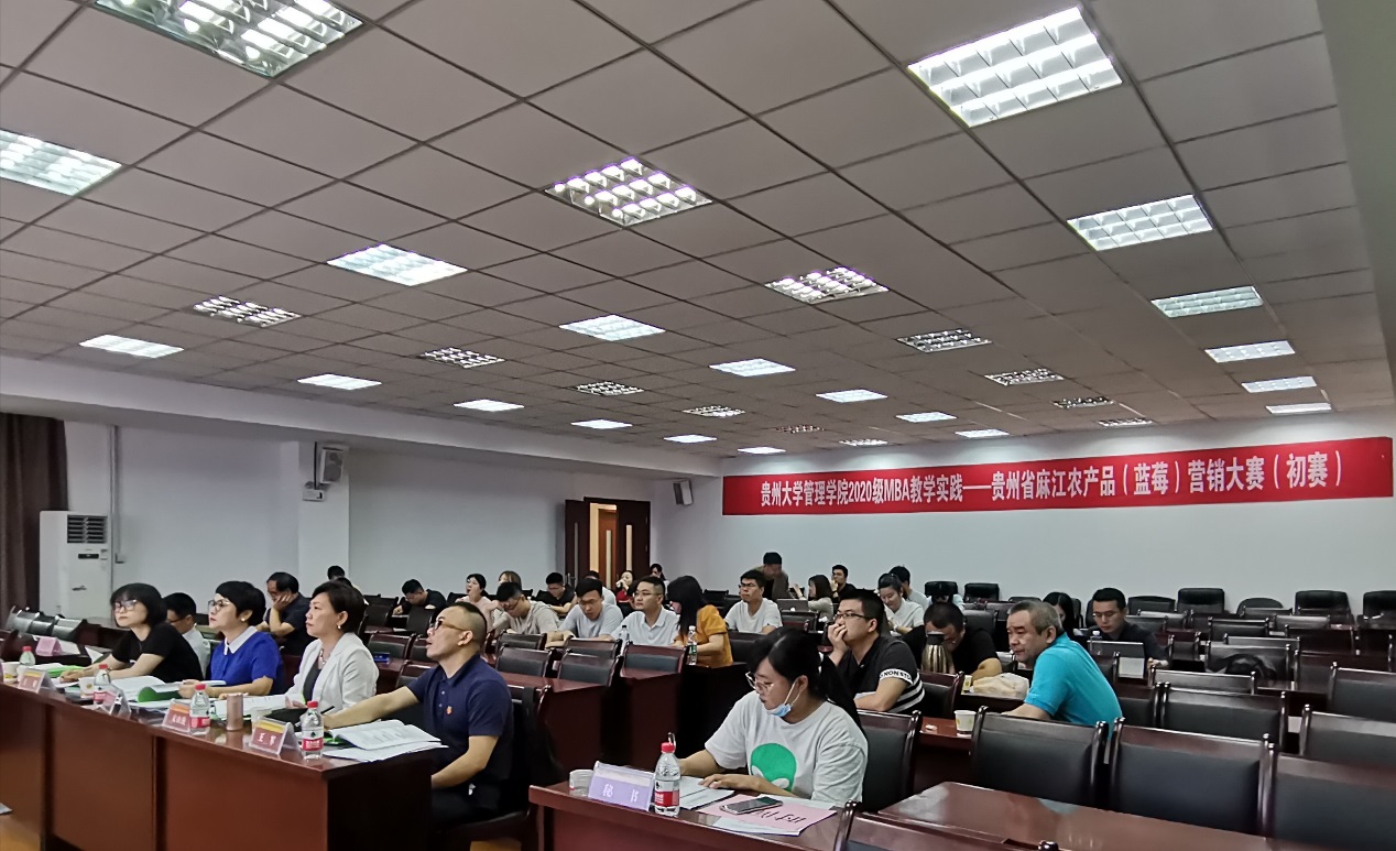 2021年6月20日,乐动官方网站2020级MBA贵州省麻江县农产品(蓝莓)营销大赛初赛在慎思楼二楼MBA报告厅举行。