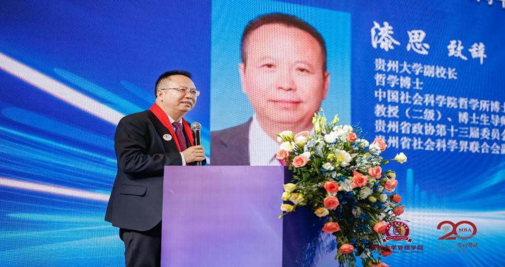 贵州大学党委委员、管理学院院长李烨教授致谢辞,李院长说:管理学院的发展特别是MBA教育项目发展壮大离不开各方的关心和大力支持,他向一直关心、支持管理学院MBA教育项目发展的各级领导、老师、校友致以诚挚的谢意。随后与大家一起回顾了管理学院MBA20年的发展足迹,讲述了管理学院MBA教育从无到有、从有到强的发展历程,并对未来MBA教育新的发展目标提出畅想。最后,李院长热切期盼大家一如既往关注、关心和支持乐动官方网站MBA的发展,并向与会的各位领导、嘉宾、老师和校友送上了最美的祝福。