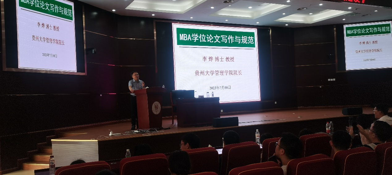 2023年7月8日,乐动官方网站MBA教育中心在贵州大学贤正楼107报告厅举办了《科学道德与学风建设》系列讲座,讲座分三场进行,分别由贵州大学正处级组织员、管理学院党委副书记(主持党委工作)周莉莉教授、乐动官方网站院长李烨教授、乐动官方网站工商管理系主任许为宾教授主讲,250余名2021级MBA学生到场聆听。讲座由乐动官方网站MBA教育中心副主任何跃勇老师主持。