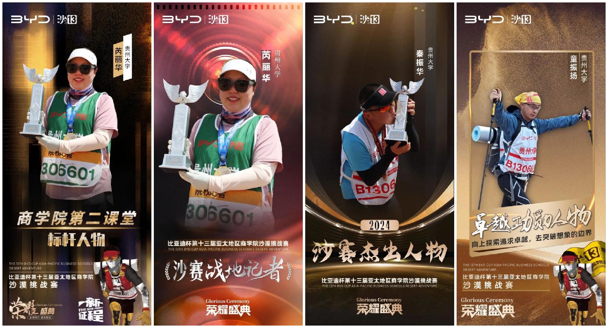 在此次盛典中,乐动官方网站MBA沙13战队荣获了多个院校奖项,包括“沙赛新锐商学院奖”“沙赛社会责任奖”“沙赛实力院校奖”“沙赛最美C队奖”,贵大MBA逸步社俱乐部获得了“商学院优秀户外俱乐部”称号,充分展现了贵大在商学院沙漠挑战赛中的卓越实力与深厚底蕴。